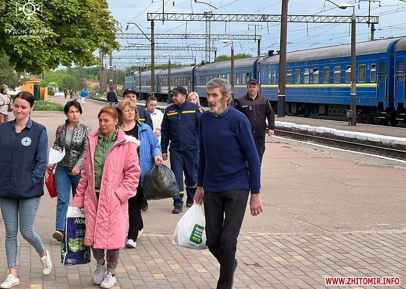 Як повідомляв Житомир.info, з 18 квітня 2023 року евакуація цивільних мешканців Донеччини проводиться до Житомирської області. 19 квітня першим потягом до Житомирської області прибули 26 жителів Донеччини, яких евакуювали з районів активних бойових дій та розмістили на території Андрушівської громади. Вранці 23 квітня 2023 року до Бердичева прибув ще один потяг з 58 евакуйованими особами з Донецької області, їх доставили до Гришковецької територіальної громади. 27 квітня до Бердичева прибув третій евакуаційний потяг із 13 жителями Донеччини, переселенці будуть розміщені на території Волицької громади. 1 травня приїхав четвертий евакуаційний поїзд з Донеччини: 45 переселенців, яких розмістять в Романівській та Чуднівській територіальних громадах.