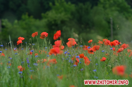 Строкаті іриси досі квітнуть на клумбах у спальних районах, а на околицях Житомира можна помилуватися цілими квітучими полями. Так, за пішохідним мостом у парку цвіте люпин, маки та інші польові квіти.