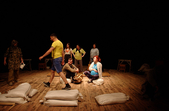 «Я гадаю, це нормальні умови для тих персонажів, які діють у цій виставі. Це нас підштовхує. Звичайно, складно, бо ти розраховуєш на якийсь час, нормальні моменти, а тут репетиція, треба щось робити, і повітряна тривога. Ми реально не можемо зібратися докупи», – сказав режисер-постановник, заслужений артист України Петро Авраменко.