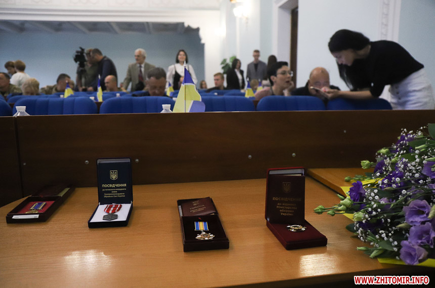 На початку сесії вручили нагороди військовим та орден «За заслуги» ІІ ступеня ректору Державного університету «Житомирська політехніка», депутат Житомирської міської ради (голова фракції партії «Слуга народу») Віктору Євдокимову. Зауважимо, що ректор політехніки був нагороджений цим орденом указом президента від 7 грудня 2022 року, з нагоди Дня місцевого самоврядування.