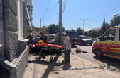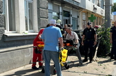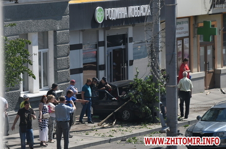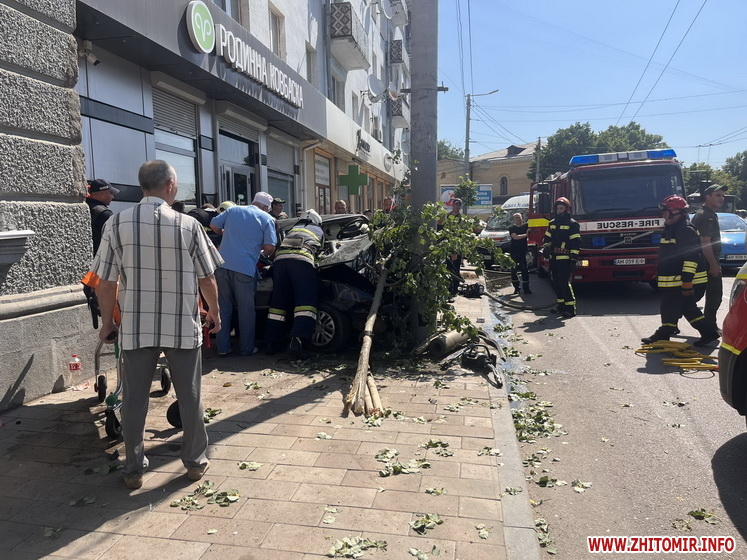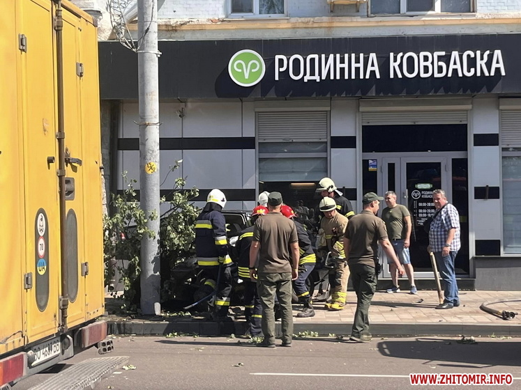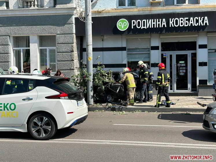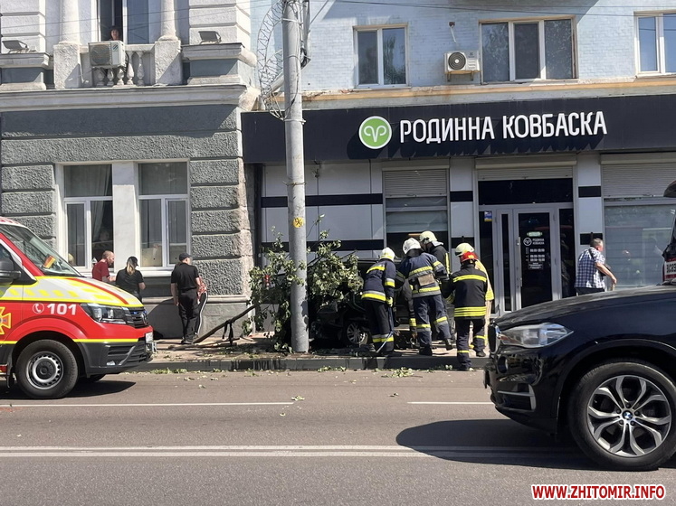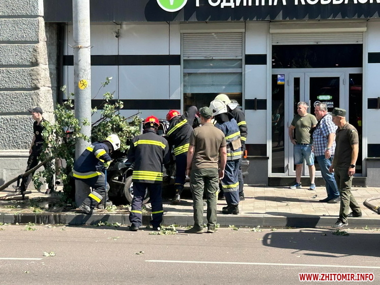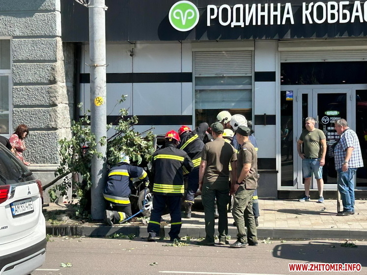 На вулиці Великій Бердичівській автомобіль вилетів на тротуар неподалік перехрестя з Михайлівською. Що стало причиною цього наразі не відомо, але внаслідок ДТП водій виявився заблокованим в автомобілі, на місце події викликали рятувальників.