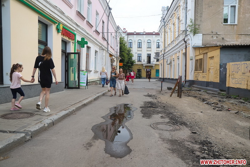 Як повідомляв Житомир.info, в 2016 році на капітальний ремонт тротуарів у центрі Житомира виділили 19 млн 314,3 тис. грн: планувалося оновити 30 тис. кв.м тротуарів – частину вулиці Театральної, Великої Бердичівської (до Бульвару), та Київської (до Небесної Сотні). Роботи з укладання плитки на Київській завершилася у 2018 році, а на вулиці Великій Бердичівській – у 2019. Гарантія на плитку діяла три роки і в 2023 році її збиралися ремонтувати за бюджетні кошти.