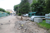 Станом на 12:00 6 липня тут працюють муніципали та бригада водоканалу. Вулиця частково розбита, навколо місць, де проводяться роботи, встановлені огородження та попереджувальні знаки.
