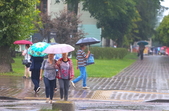 І допоки комунальники працюють не покладаючи рук, містяни насолоджуються довгоочікуваною прохолодою. Навіть доволі сильний дощ не лякає ні дітей, ні дорослих - у яскравому вбранні та з яскравими парасольками вони прогулюються містом або ж поспішають по своїх справах.