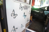 "У деякі місця не бажано ставити або вішати сумки. Водії постійно просять пасажирів цього не робити. Але пасажири сваряться і всеодно ставлять. Тому деякі водії вирішили креативно завадити створенню конфліктних ситуацій: почали прикрашати ці місця у салоні. Взимку вони ставлять там ялинки, влітку - квіти, м'які іграшки, створюють композиції та пишуть оголошення з проханням не ставити сумки. А буває, що в когось поганий настрій і він іде до кабіни водія посваритися, бачить смайлики чи наліпку "усміхніться", усміхається і йде назад", - розповідає заступник начальника депо ТТУ з експлуатації Сергій Корнійчук.