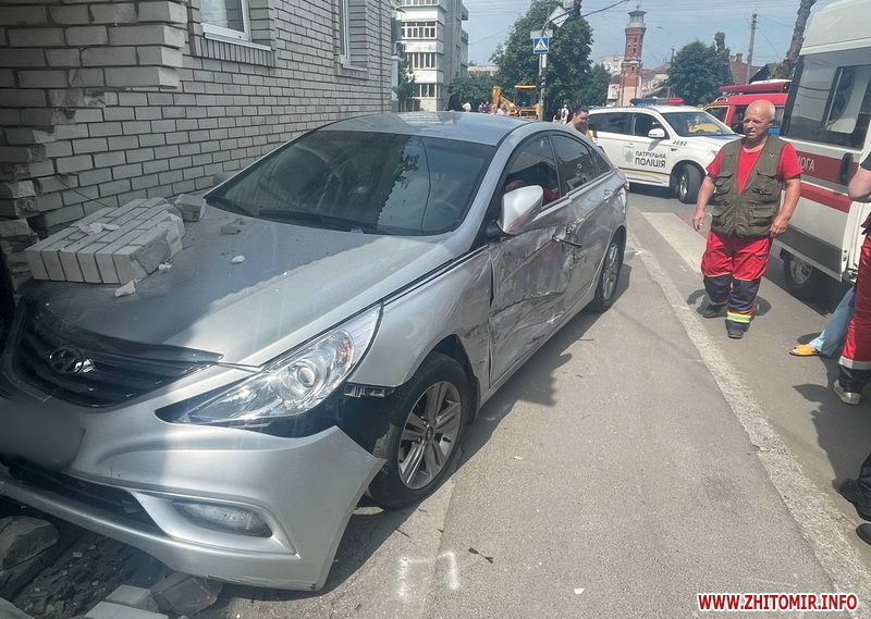 У Житомирі 25 липня близько 11 години на перехресті Шевченка-Святослава Ріхтера зіткнулися Hyundai та Daewoo, після чого одна з автівок влетіла в будинок, є потерпілі, на місці поліція та «швидка».