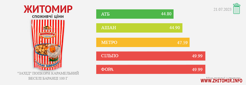 Моніторинг здійснено на основі інформації, отриманої за методом контрольної закупки 21.07.2023 р. у місцях продажу: АТБ, пр. Миру, 15 А, Ашан, вул. Київська, 77, Метро, вул. Ватутіна, 55-в, Сільпо, пл. Житній ринок, 1, Фора, вул. Лятошинського, 2