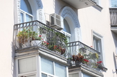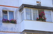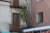 Популярними рослинами на “балконних“ клумбах стали чорнобривці. А на одному з балконів у центрі виросла справжнісінька береза.