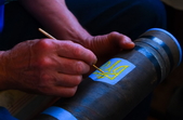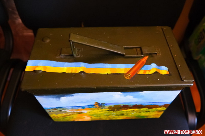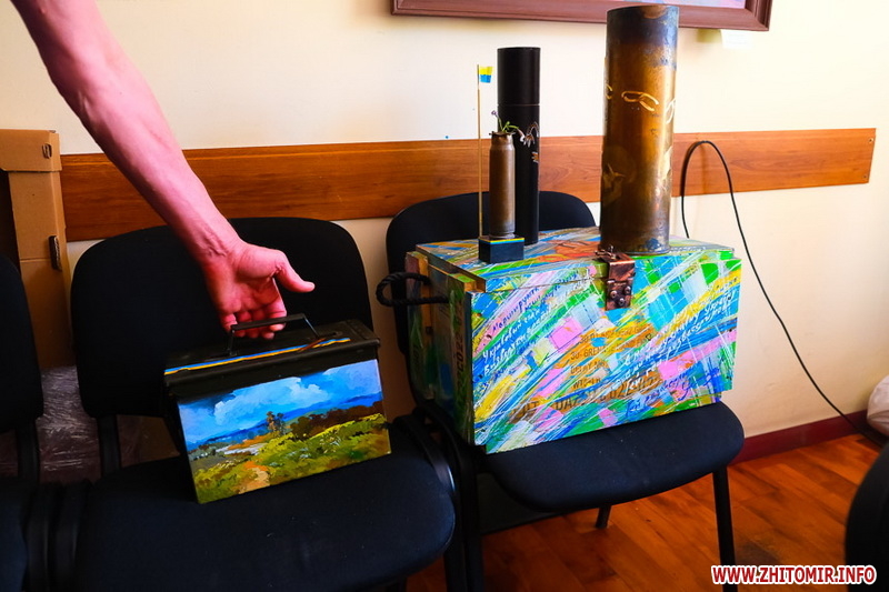 Використані тубуси від джавелінів, частини відпрацьованої зброї, гільзи, ящики для снарядів тощо перетворюють на артоб'єкти художники з Житомира, щоб надалі продати їх на аукціоні та спрямувати вилучені кошти на потреби військових.