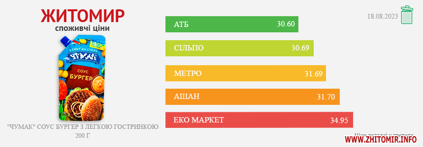 Ціни в Житомирі за 22.08.2023