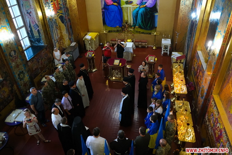 Зранку 24 серпня у громадському транспорті та на вулицях люди вітають один одного зі святом, адже сьогодні відзначають День Незалежності України. Цьогоріч у Житомирі вирішили святкувати без концертів, натомість відзначення почали з молитви у Свято-Михайлівському кафедральному соборі. Тут зібралися представники духовенства і громадськість, щоб спільно помолитися за Україну та виконали з хором твір “Боже великий, єдиний”.