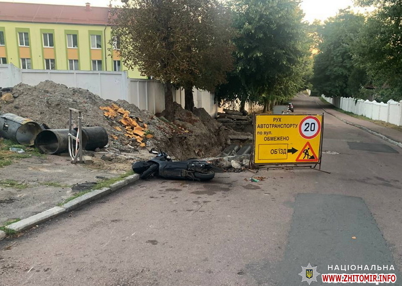 «Дорожньо-транспортна пригода сталася 5 вересня на перехресті вулиць Шевченка та Фещенка-Чопівського. За попередніми даними, неповнолітній житомирянин не впорався з керуванням двоколісного та допустив падіння. Унаслідок цього травми отримали керманич мопеда та пасажирка, його однолітка. Обидвох ушпиталено до обласної дитячої лікарні», - йдеться в повідомленні.