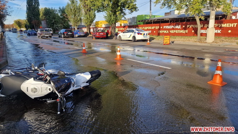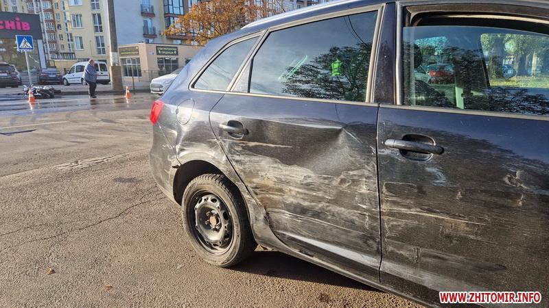 У Житомирі на вулиці Вітрука 13 жовтня близько 17 години сталася аварія за участю мотоцикла та двох автівок.