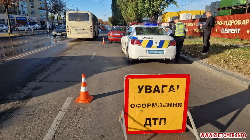 Як повідомляв Житомир.info, 9 жовтня 2023 року близько 15 години в Житомирі на перехресті вулиць Покровська та Домбровського, біля Сінного ринку, зіткнулися дві автівки, після чого одна з них вилетіла на тротуар: травмувалася жінка-пішохід.