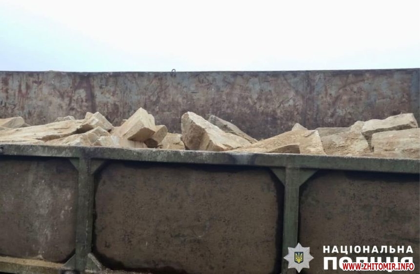 «20 жовтня автомобіль «КАМАЗ» з двома причепами заповненими камінням зупинили поліцейські для перевірки. Водій, 53-річний житель громади, не надав жодних документів, які б підтверджували законність походження та перевезення такого вантажу. На місці працювала слідчо-оперативна група відділення поліції №2 (м.Олевськ) Коростенського райуправління. Загальна вага каменю склала близько 14 тонн. Тож слідчі вилучили автомобіль з вантажем. Одночасно поліцейський проводять досудове розслідування за ст. 240 (Порушення правил охорони або використання надр, незаконне видобування корисних копалин) КК України», - повідомляють правоохоронці.