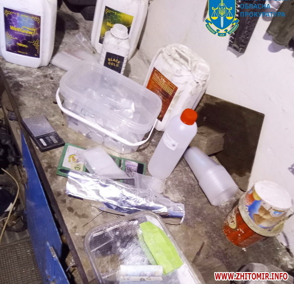 Слідство встановило, що 27-річний мешканець Житомира, який раніше притягувався до кримінальної відповідальності за зберігання наркотичних засобів без мети збуту, облаштував у своєму гаражі нарколабораторію.