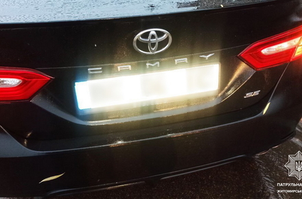 У Житомирі на вулиці Володимира Гнатюка патрульні зупинили автомобіль марки Toyota, водій якого наклеїв на номерні знаки світловідбивну плівку. Таким чином керманич хотів ускладнити ідентифікацію автомобіля.