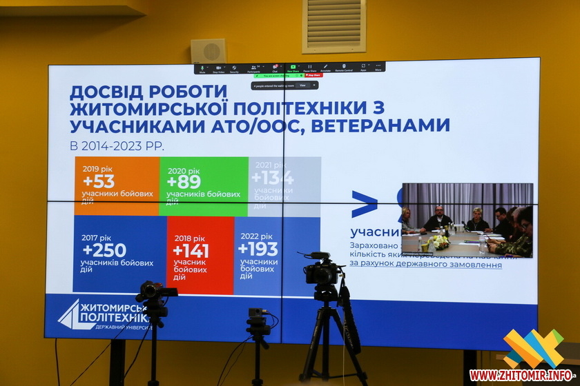 Сесія Тимчасової спеціальної комісії, яка стала ключовою подією у питанні підтримки ветеранів, пройшла на базі Державного університету «Житомирська політехніка». Ректор університету Віктор Євдокимов, презентував план залучення ветеранів до цивільного життя через професійну адаптацію та зайнятість, що включає створення Центру ветеранського розвитку в університеті.