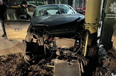 Патрульні притягнули до відповідальності водія, який не виконав численні вимоги про зупинку та в’їхав у газову трубу на вулиці Ольжича у Житомирі.