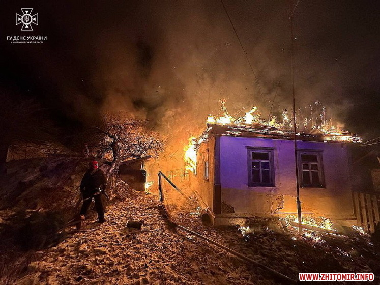 «8 січня о 23:39 до Служби порятунку “101” надійшло повідомлення про пожежу в цегляному житловому будинку в с. Калинівка Лугинської громади Коростенського району. Господарів на місці вдома не було. Про подію сповістив сусід, який вночі побачив полум'я, що повністю охопило оселю та викликав рятувальників», - йдеться у повідомленні.
