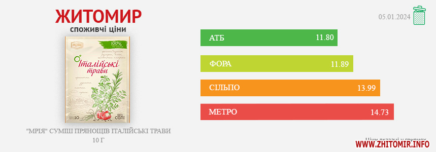 Моніторинг здійснено на основі інформації, отриманої за методом контрольної закупки 05.01.2024 р. у місцях продажу: АТБ, пр. Миру, 15 А, Фора, вул. Лятошинського, 2, Метро, вул. Ватутіна, 55-в, Сільпо, пл. Житній ринок, 1