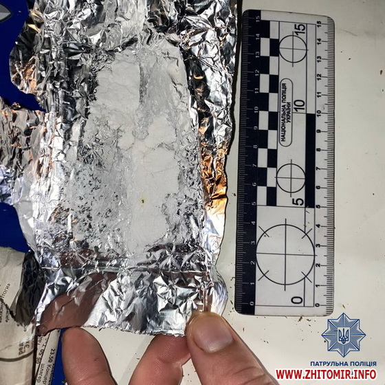 На вулиці Домбровського у Житомирі патрульні виявили чоловіка, який мав при собі згортки з наркотиками.