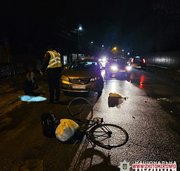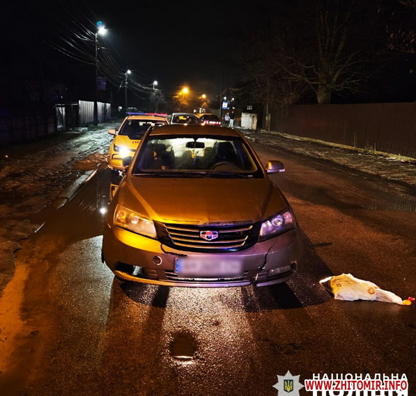 Як повідомляв Житомир.info, дорожньо-транспортна пригода сталася 17 грудня 2023 року близько 17:25 по вул. Бистрицькій райцентру. Попередньо, водійка автомобіля Geely, 38-річна містянка, здійснила наїзд на жінку, яка у цей час перетинала автошлях, ведучи велосипед у руках. У результаті ДТП 80-річна бердичівлянка отримала травми та була ушпиталена до відділення інтенсивної терапії міської лікарні.