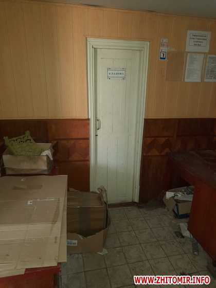 «Адмінбудинок, загальною площею 76,0 кв.м, склад-гараж, загальною площею 41,5 кв.м, вбиральня - 2,0 кв.м за адресою: Житомирська обл., Житомирський р-н, м.Чуднів, вул. Франка Івана, 1. Балансоутримувач – Головне управління Держпродспоживслужби в Житомирській області. До складу об’єкта приватизації входять: одноповерхова цегляна адмінбудівля загальною площею 76,0 кв.м; обладнана газовим котлом «Данко» та лічильником Меtrix, газопостачання та електропостачання відключене; склад-гараж загальною площею 41,5 кв.м (стіни – цегляні); вбиральня (стіни – дерев’яні). Об’єкт приватизації розташований в центрі населеного пункту, з 2017 року не використовується, стан задовільний, потребує ремонту. Земельна ділянка площею 0,0837 га, правокористувач – Головне управління Держпродспоживслужби в Житомирській області», - йдеться в описі лота (див.фото нижче).
