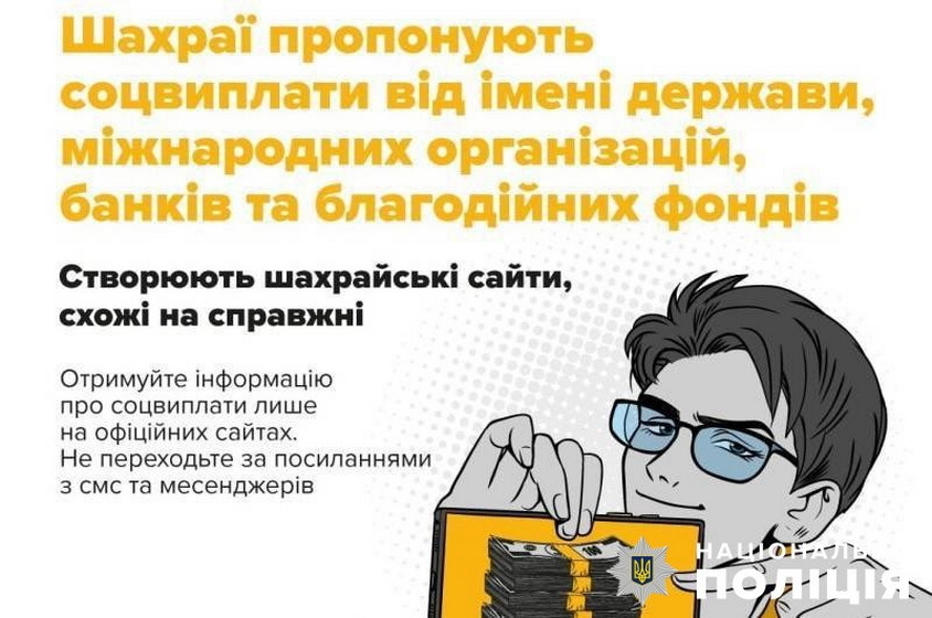 «Грошова допомога від ООН»: поліція попереджає про оманливі повідомлення у соцмережах. Сподіваючись отримати виплати від міжнародної організації, 37-річна жителька Коростеня втратила понад 17 тисяч гривень. Поліцейські встановлюють обставини шахрайства.