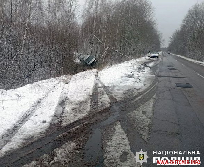У Хорошівській громаді сталася ДТП: поліція з’ясовує обставини. Подія сталася вранці 13 березня на 44 км автодороги Бараші – Топорище, неподалік с. Лизника. Попередньо, водій автомобіля «Renault Kangoo», 29-річний житомирянин, рухаючись у напрямку смт Хорошева, не впорався з керуванням та виїхав за межі автошляху. Автомобіль потрапив у кювет та перекинувся.