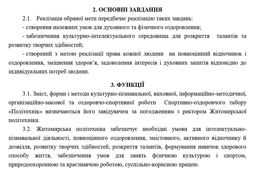 «На цій земельній ділянці є майно університету, яке їм передало Міністерство освіти і науки (наказом від 23.11.2016 р.) – оздоровчий табір «Політехнік», тому ми мали передати їм землю», - сказав у коментарі Житомир.info заступник начальника ОВА Віктор Градівський.