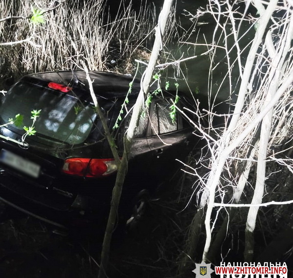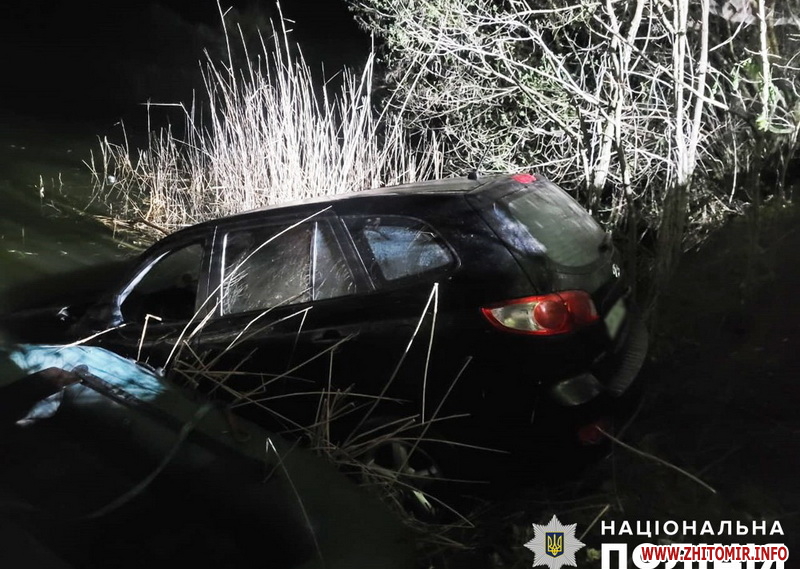 «Подія сталася увечері 9 квітня: близько 23:00 до поліції надійшло повідомлення про те, що автомобіль «Huindai» з’їхав з проїзної частини та впав у колишній кар’єр, заповнений водою. На місці події працювали правоохоронці відділу поліцейської діяльності №1 (смт Черняхів) Житомирського райуправління та фахівці ДСНС. Рятувальники витягли автівку з води. Керманич та пасажири вибралися самостійно. Їм було надано необхідну медичну допомогу», - йдеться у повідомленні.