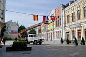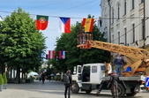 У Житомирі вранці 9 травня комунальники завершували розвішування прапорів країн Європейського Союзу на Михайлівській.