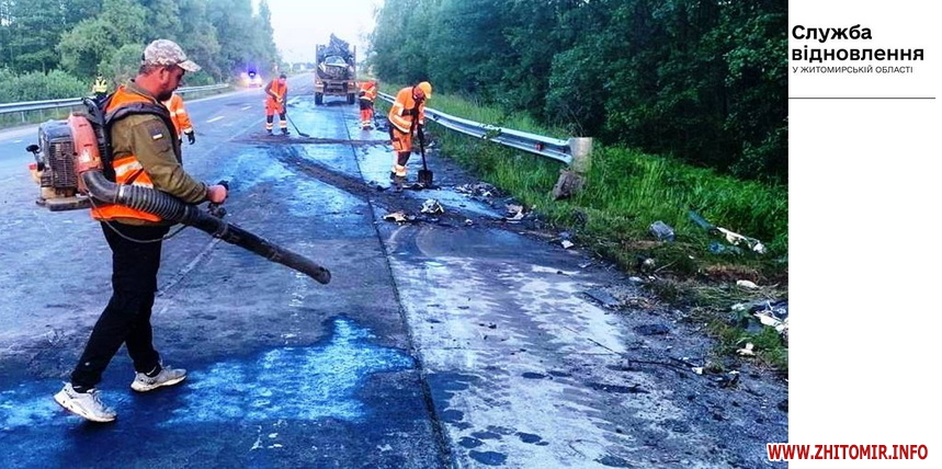 «На дорогах держзначення Житомирщини виконуємо роботи з відновлення безпечного руху після ДТП. У межах експлуатаційного утримання автошляхів загального користування державного значення Житомирщини виконуємо роботи з очищення проїзної частини від сміття, відновлення чи заміни технічних засобів організації дорожнього руху після дорожньо-транспортних пригод», - йдеться в повідомленні.