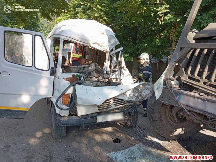 «8 червня о 8:07 до Служби порятунку «101» надійшло повідомлення про дорожньо-транспортну пригоду за участю вантажівки та мікроавтобуса. Подія трапилася у смт Народичі Коростенського району. До прибуття рятувальників очевидці події допомогли вибратися з мікроавтобуса двом пасажирам. Водія затиснуло конструкціями транспортного засобу. Рятувальникам довелось за допомогою гідравлічного інструменту відрізати дверний замок та розрізати панель приладів, аби деблокувати постраждалого водія з мікроавтобуса. Після чого бійці ДСНС допомогли медикам доправити постраждалого до карети швидкої допомоги. Усі обставини події наразі з’ясовують фахівці», - йдеться у повідомленні.