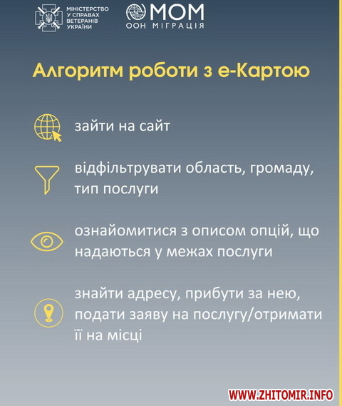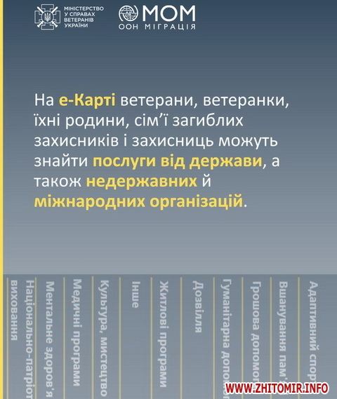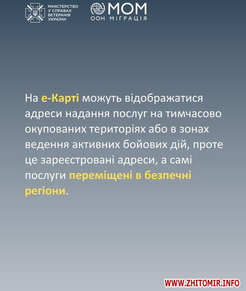 Е-Карта послуг в громадах ветеранам і ветеранкам війни розроблена у співпраці Мінветеранів та Представництва МОМ в Україні.
