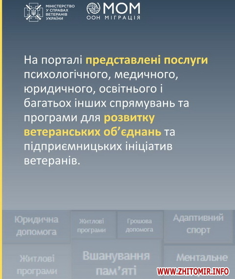 Портал містить інформацію для спрощення процесу за принципом "знайшов-прийшов-отримав” для кожного ветерана і кожної ветеранки.