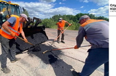 Крім того, усувають наслідки рясних опадів на узбіччях: засипають промоїни та просідання асфальтоганулятом.