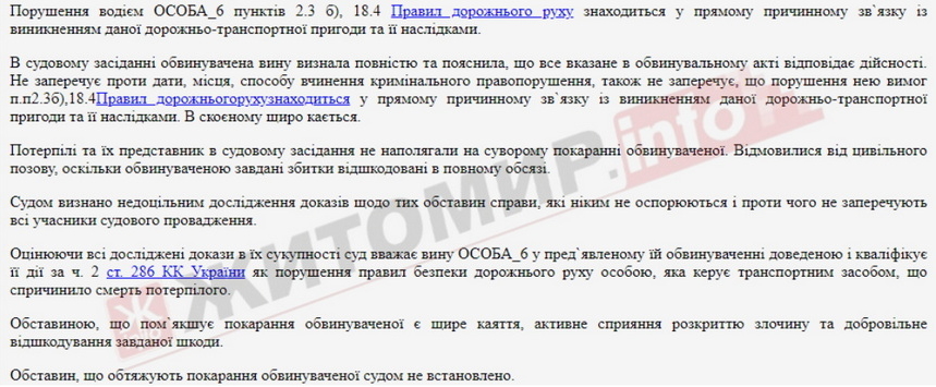Про вирок водійці 27 червня повідомляє пресслужба Новоград-Волинського міськрайонного суду Житомирської області.