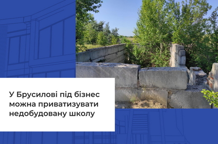 У Брусилові Житомирської області на вулиці Грушевського, 21, пропонують приватизувати недобудовану школу. Рівень готовності об’єкта — 2%, частково є фундамент зі збірних залізобетонних блоків. Новий власник може звести іншу будівлю на цьому місці та організувати простір для втілення будь-яких бізнес-ідей. Цільове призначення не обмежене.