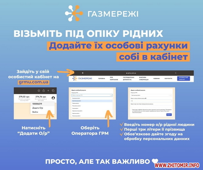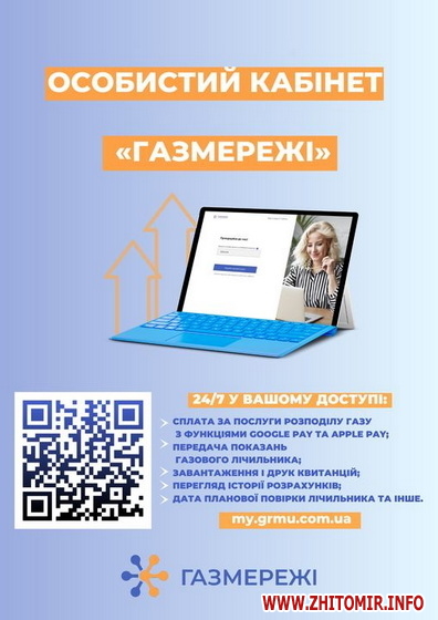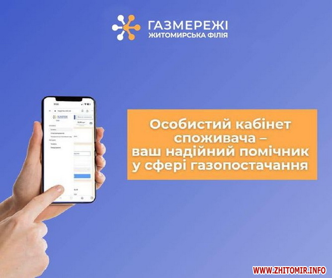 Житомирська філія «Газмережі» радить клієнтам користуватися особистим кабінетом — сучасним онлайн сервісом. Завдяки Особистому кабінету вже понад 36 тисяч клієнтів Житомирської філії «Газмережі» розв'язують свої питання щодо розподілу газу дистанційно.