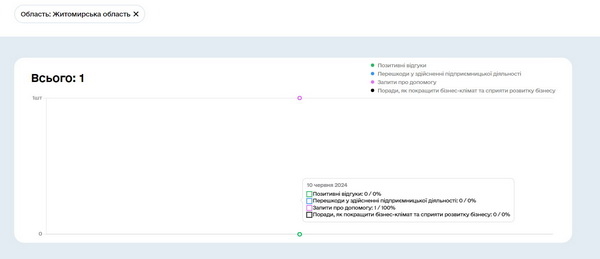 Зауважимо, що станом на 30 липня по Житомирській області відгуків немає, є лише 1 запит про допомогу.