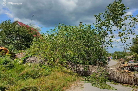 Також упродовж доби подібні аварійні роботи проводилися бійцями ДСНС в обласному центрі, м. Коростишів Житомирського району, а також в селах Слобідка та Черепин Коростенського району. Там загалом було прибрано з проїжджих частин доріг ще чотири повалені негодою дерева.