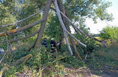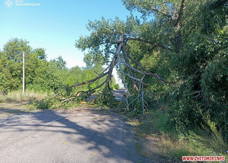 «29 липня о 09:15 до Служби порятунку «101» надійшло повідомлення про те, що необхідна допомога рятувальників у прибиранні дерев, що перекрили рух транспортним засобам. Пригода сталася на автодорозі сполученням смт Народичі – м. Овруч у Коростенському районі. По прибуттю стало відомо, що через пориви вітру на проїжджу частини дороги впали три дерева, чим заблокували рух автівкам в обох напрямках. Рятувальники бензопилами розрізали їх на шматки та прибрали на узбіччя», - йдеться у повідомленні.