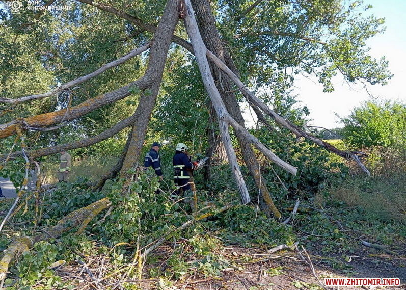 Як повідомляв Житомир.info, 18 липня рятувальники розрізали близько 10 дерев, що перекрили рух автобусу в місті Житомирської області.