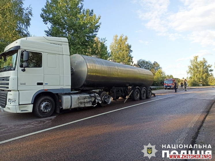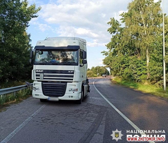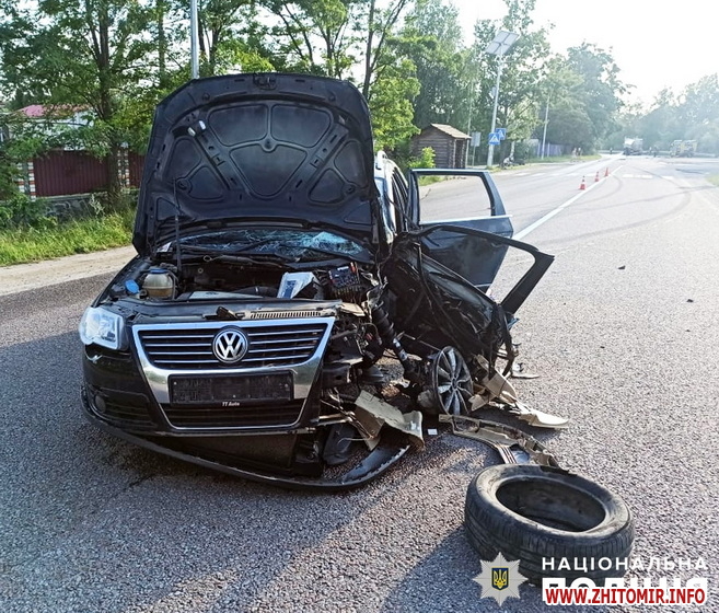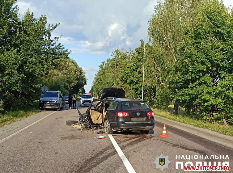 «Попередньо встановлено, що автомобіль «Volkswagen Passat» під керуванням 29-річного жителя Овруцької громади, рухаючись у напрямку м. Житомира, виїхав на смугу зустрічного руху, де відбулось зіткнення з автопоїздом «DAF», за кермом якого перебував 31-річний житель с. Денишів. Унаслідок ДТП водій «Volkswagen Passat» та його 35-річний пасажир, житель Київщини, зазнали травмувань та були доставлені до лікарні», - йдеться в повідомленні.