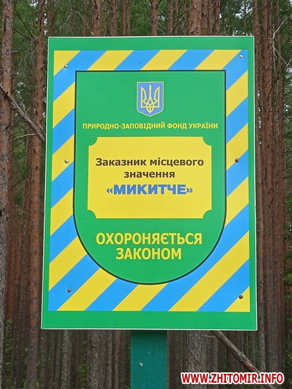 Довідково: Заказник «Микитче» - лісовий заказник місцевого значення, створений у 2001 році на території Коростенського району Житомирської області, філії «Олевське лісове господарство» на площі 3,2 га. Розташований на територіях: Журжевицького, Хоченського та Юріївського лісництв. Створений задля забезпечення охорони типових для кожного окремого ботаніко-географічного району лісових екосистем.