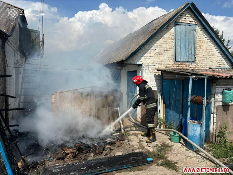 До того ж в селищі Ружин Бердичівського району рятувальники загасили дах веранди приватної оселі, що спалахнув на площі 3 кв. м, а в селищі Нова Борова Коростенського району – цегляну господарську споруду.