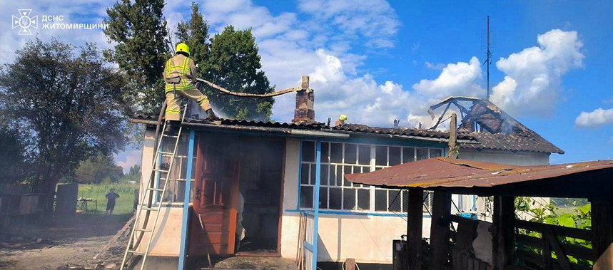 «10 серпня о 15:05 до Служби порятунку «101» надійшло повідомлення про пожежу в дерев'яній господарчій будівлі у с. Красилівка Коростишівської територіальної громади Житомирського району. На момент прибуття рятувальників з’ясувалося, що вогонь знищив господарчу будівлю та охопив дах житлового будинку, розташованого поруч. Існувала загроза поширення пожежі оселею та перекидання полум'я на дровітню на відстані 3 м. Аби загасити пожежу, фахівцям ДСНС довелось для підвозу води залучили ще одне відділення рятувальників», - йдеться у повідомленні.