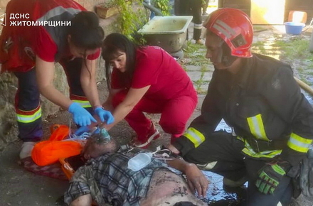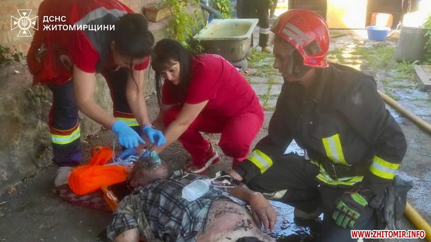 «24 серпня о 14:49 до Служби порятунку «101» надійшло повідомлення про пожежу в приватному житловому будинку в м. Бердичів. На місці події бійці ДСНС встановили, що вогонь охопив одну з кімнат та поширився на частину даху. В коридорі на підлозі рятувальники виявили 65-річного чоловіка, він був при свідомості. Рятувальники винесли його на свіже повітря та передали медикам. Чоловіка з ознаками отруєння продуктами горіння та численними опіками доставлено до реанімаційного відділення Бердичівської міської лікарні», - йдеться в повідомленні.